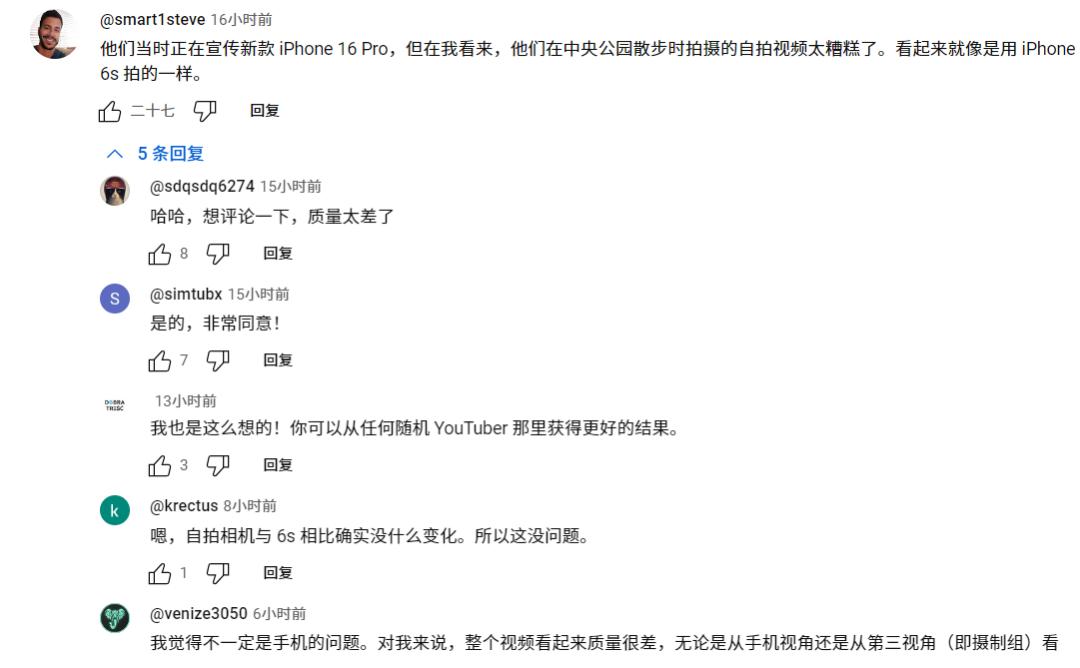 在完成一些尴尬的喜剧表演后,库克与吉米的旅途告一段落。而自从近日该节目被发布后,许多观众却活跃了起来,不少人吐槽这段用iPhone16拍摄的视频稳定性和质量很差。