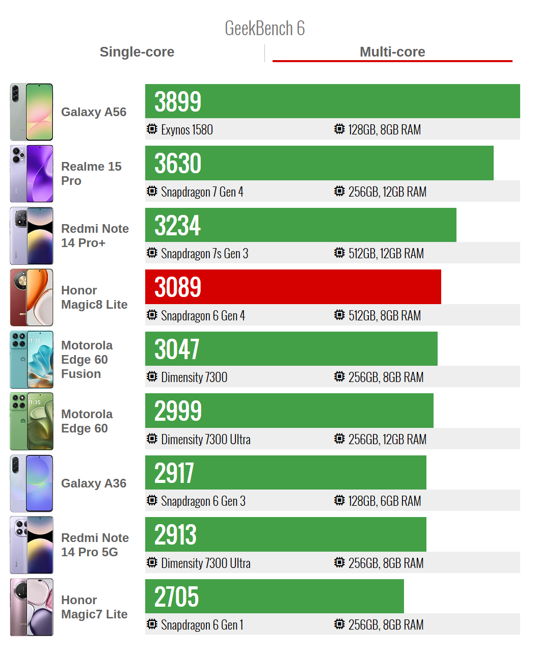 规格方面,荣耀 Magic8 Lite 手机搭载了高通骁龙 6 Gen 4 处理器,提供 8GB 内存以及 256GB 或 512GB 的存储空间。