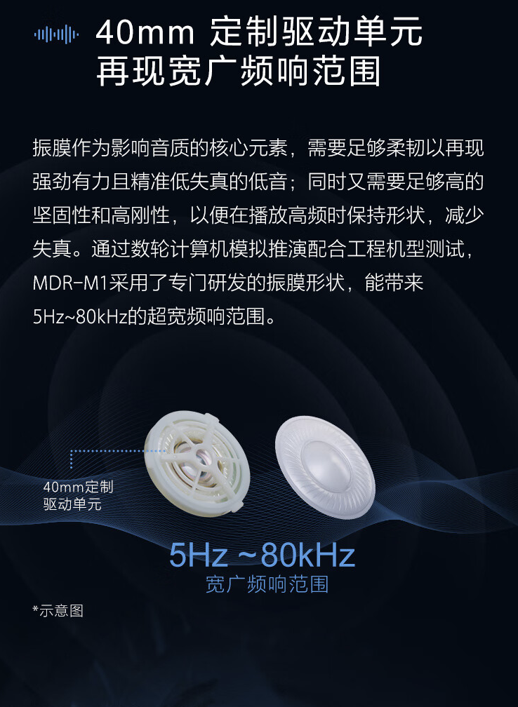 据介绍,这款耳机采用封闭式声学结构,号称能够消除耳机中的环境噪音和声音泄漏,其音质的核心是一个独特开发的 40mm 驱动单元,可实现超宽频播放(5 Hz - 80 kHz)。
