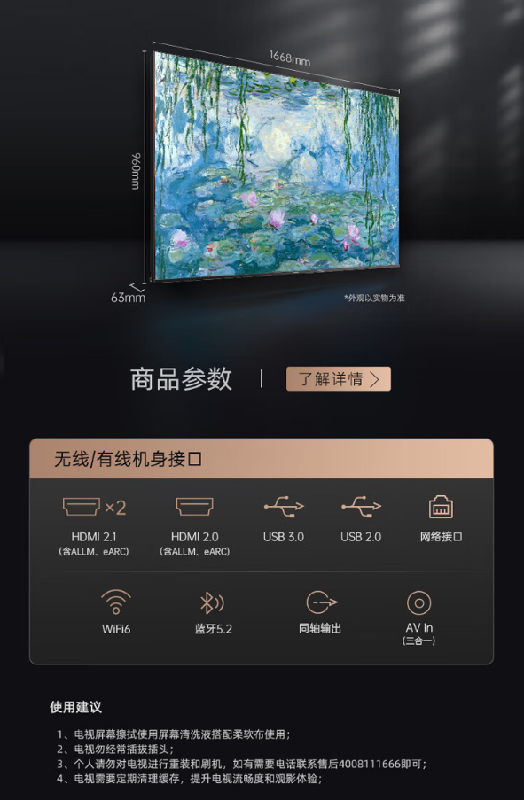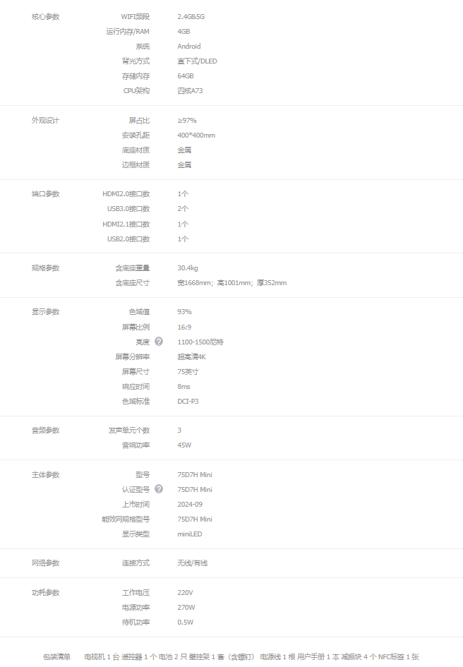75 英寸:4999 元