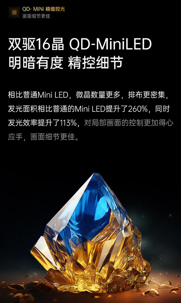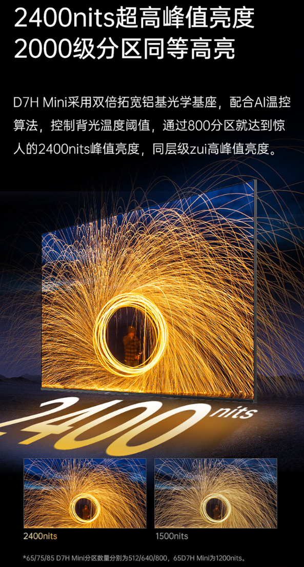 据介绍。长虹 D7H Mini 电视拥有 65 / 75 / 85 英寸三种尺寸可选,自带定制挂架,支持“0 距离无缝贴墙”;该电视还搭载双驱 16 晶 Mini LED,拥有 2400nits 峰值亮度(65DH7 Mini 为 1200nits)。