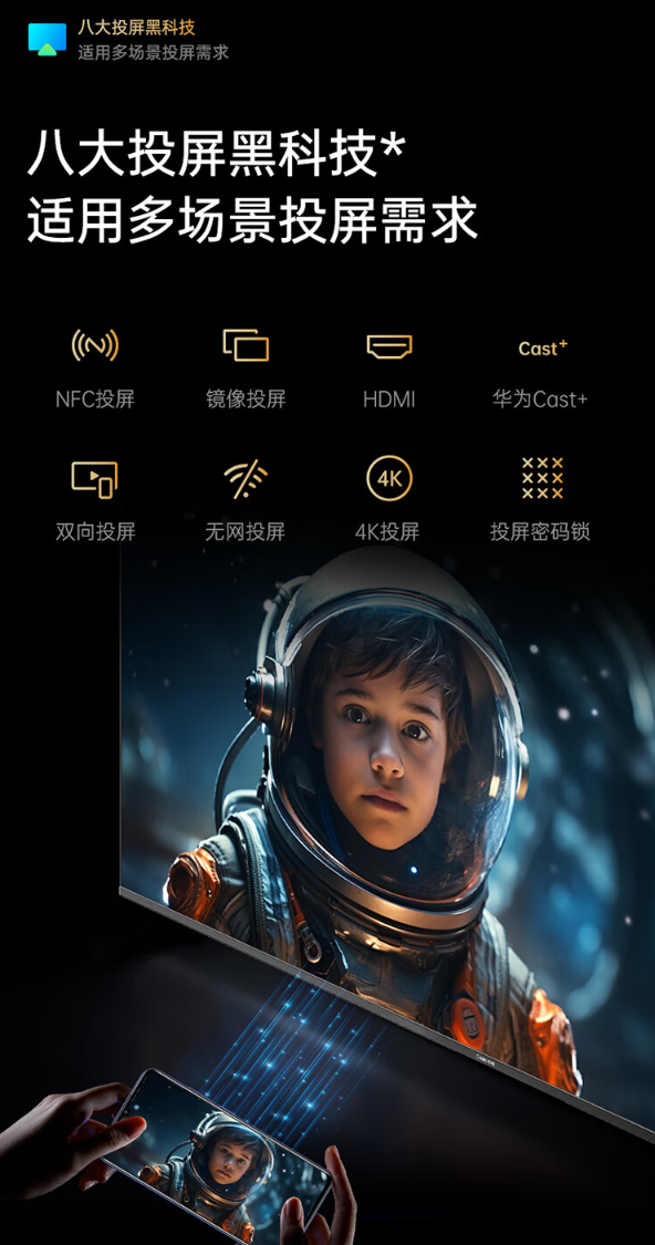长虹 D7H Mini 电视支持开机无广告特性,购机首年送一年腾讯视频 SVIP;该电视同时还支持 NFC 投屏、镜像投屏、华为 Cast+、双向投屏、无网投屏、4K 投屏等功能。