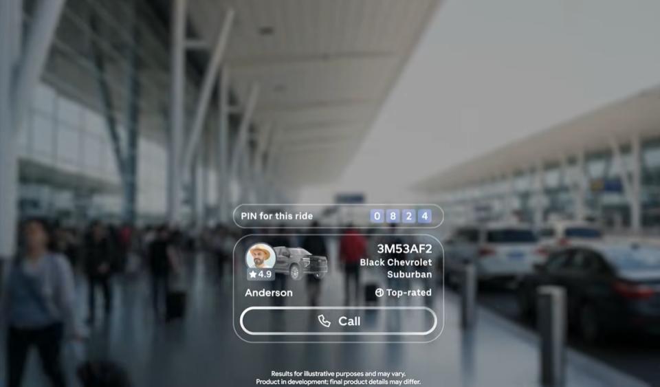 最终,车辆信息(如车牌号)会直接显示在视野中,用户甚至可通过眼镜便捷地呼叫司机,整个过程实现了信息与物理世界的无缝融合,让用户始终保持抬头、解放双手。