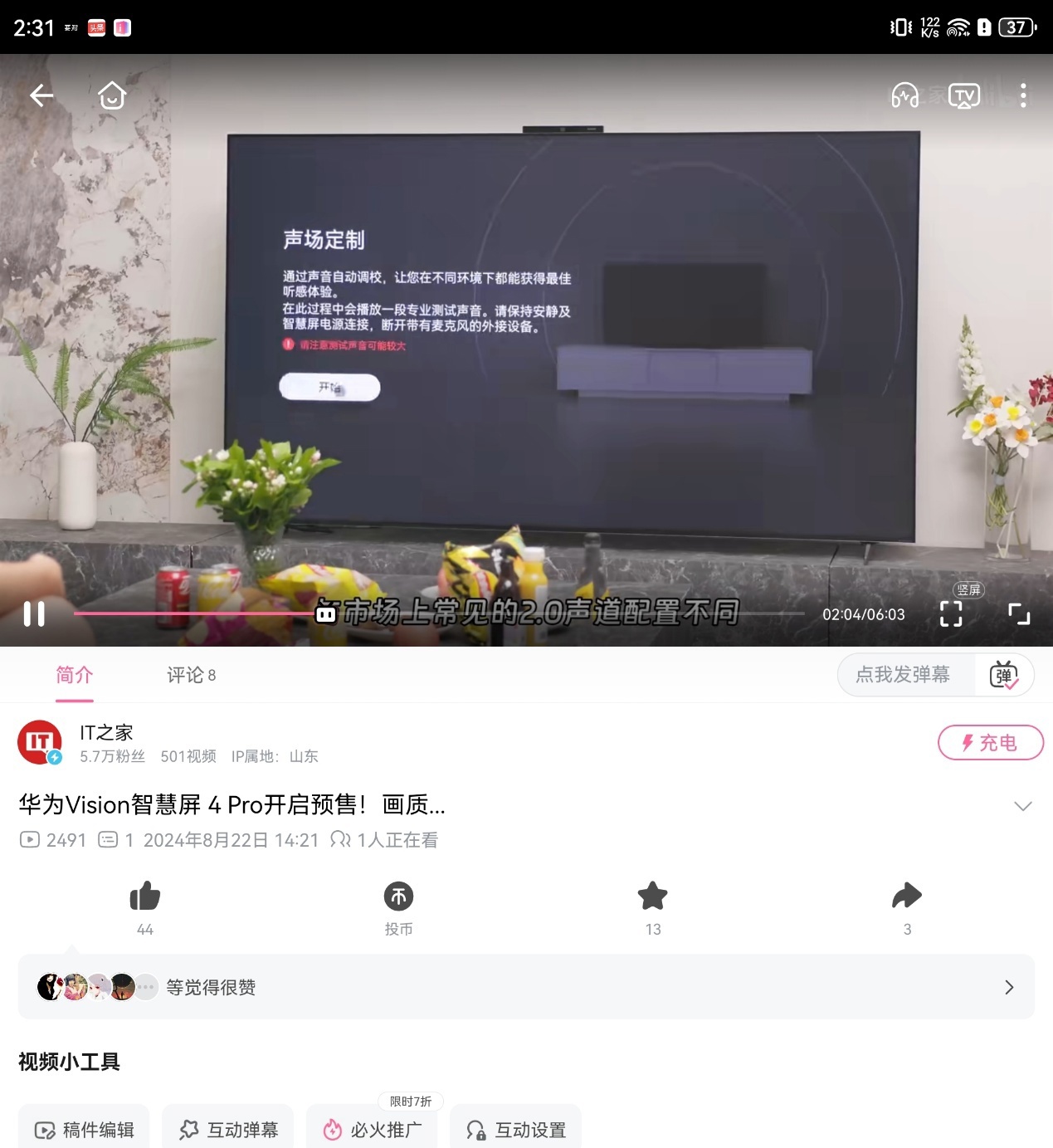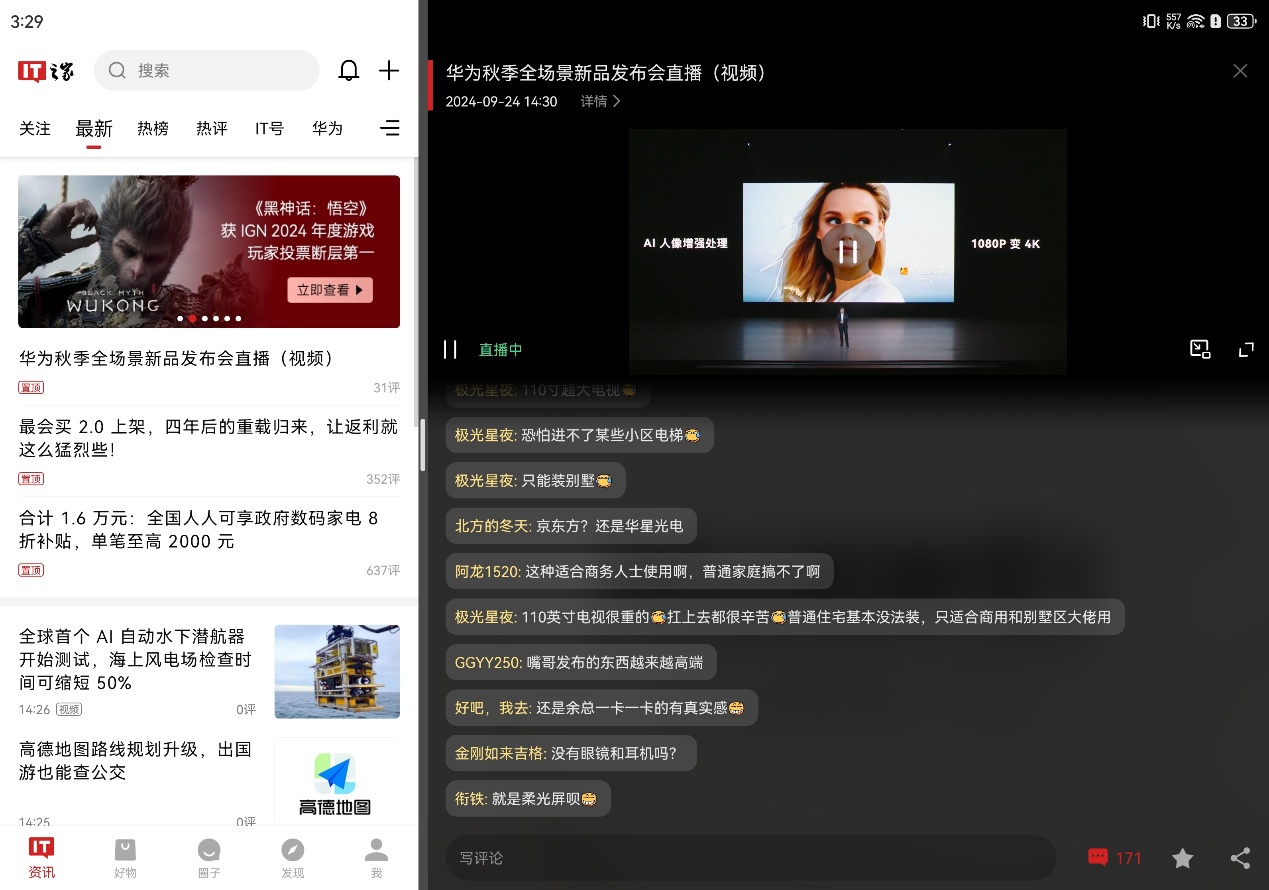 也可以一边以不小于手机屏幕的面积看视频、一边刷评论。