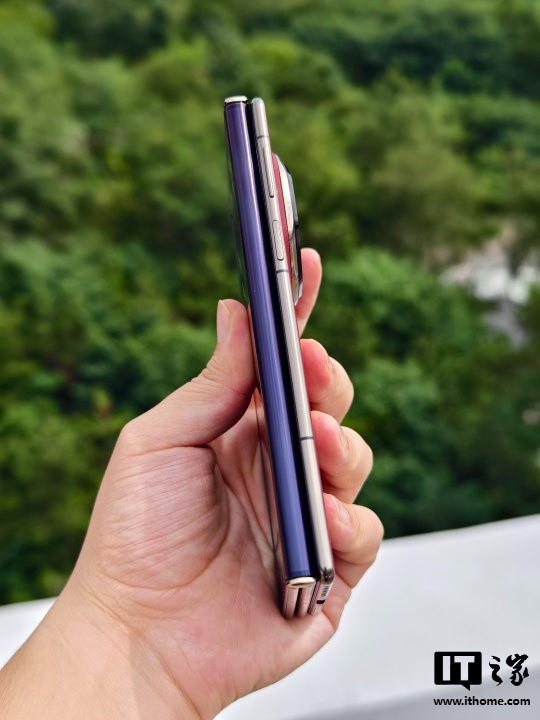 在双屏态下,Mate XT 非凡大师的屏幕尺寸为 7.9 英寸,分辨率为 2232 × 2048,机身厚端 7.45mm、薄端 4.75mm,此时手机握持时的重量感就已经大大化解了。