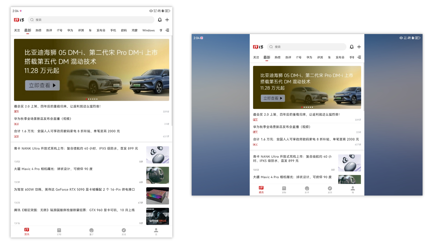 在当前的适配情况下,有更多应用可以在竖屏状态下满屏显示,相比横屏状态下使用平行视界能够提供更多的有效信息流展示面积。