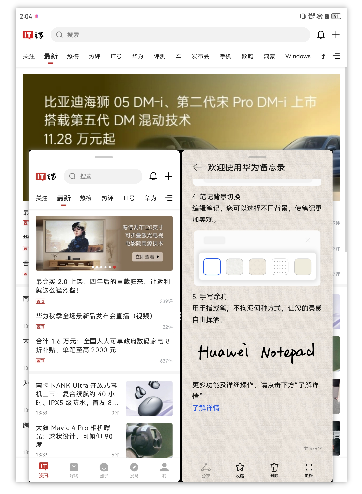 在这一状态下,进行文档阅读或信息流的浏览、以及左右分屏多任务,都可以带来不错的体验。