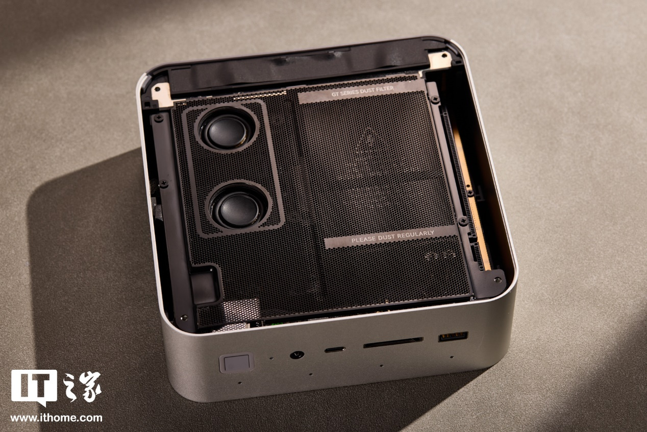 零刻 GTi12 UItra 采用了底部进风的设计,配有一张金属防尘网,使机器内部不易积灰。后期维护只需要打开底盖,清理金属防尘网即可。