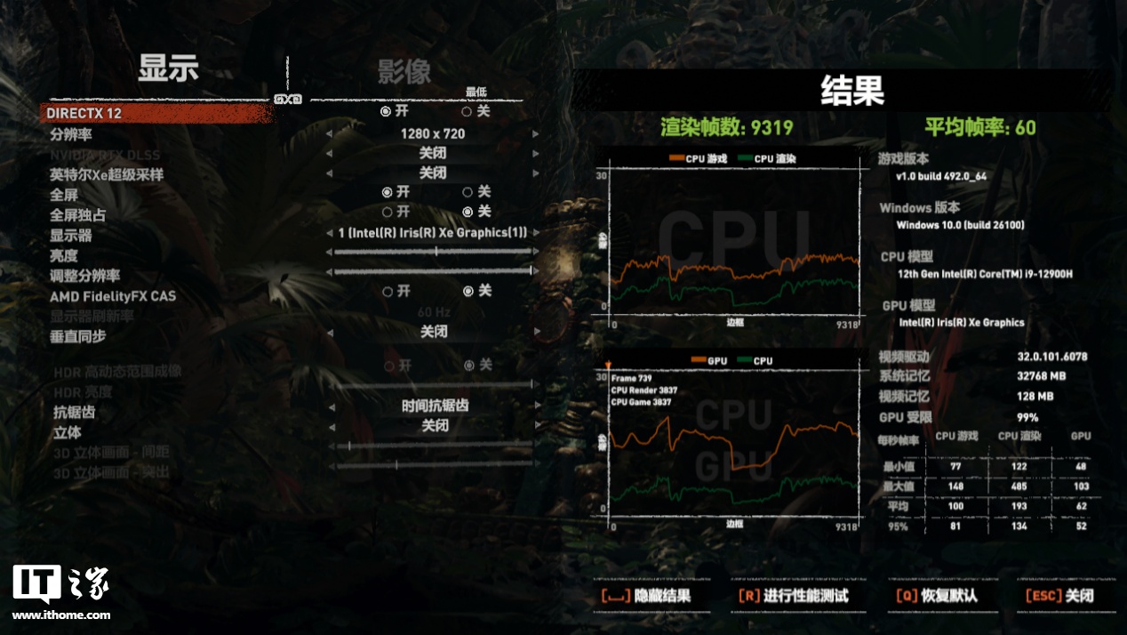 在《古墓丽影:暗影》中,零刻 GTi12 UItra 主机在 1080p 分辨率最低画质设置下平均 37 帧;720p 分辨率最低画质下平均 60 帧,可玩但体验一般。