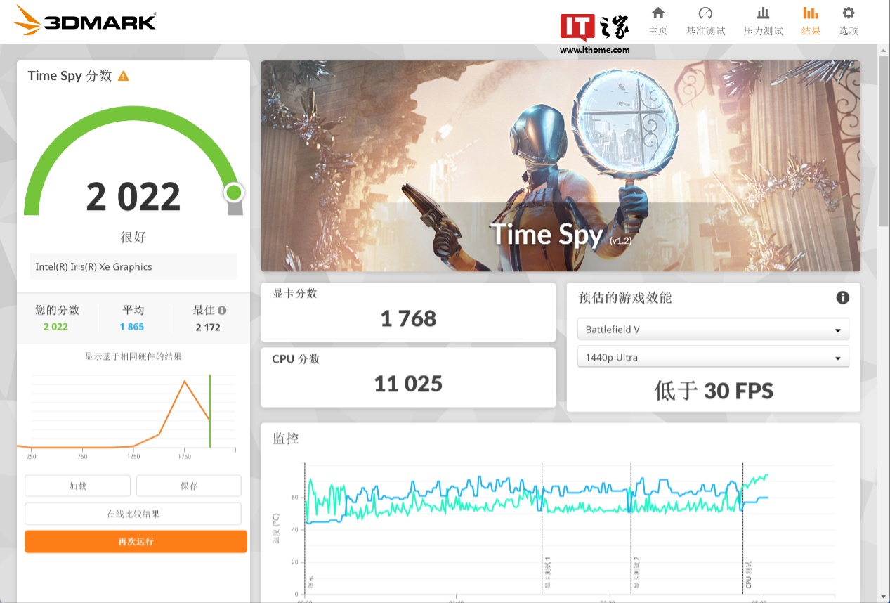 英特尔锐炬 Xe 96EU 核显在 GeekBench 6 的 GPU 测试中分数为 16506 分,3DMark 测试成绩如下,其中多个分数接近最佳成绩,性能释放出色。