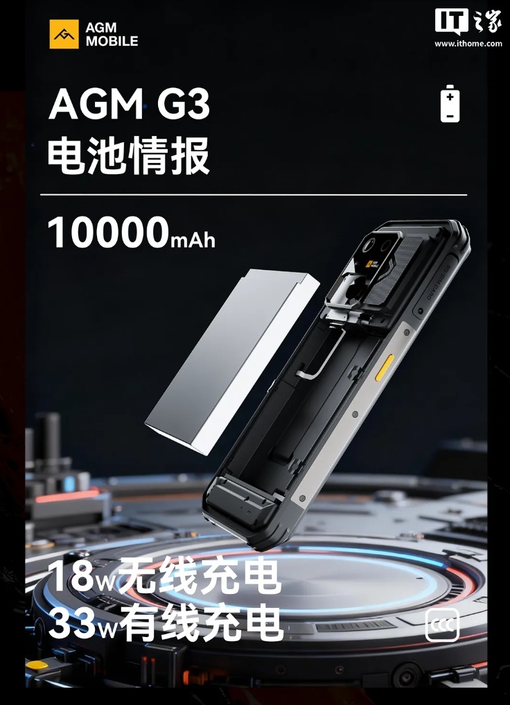 《10000mAh 电池入场:AGM G3 新机官宣今年发布,支持 33W 有线 + 18W 无线充电》