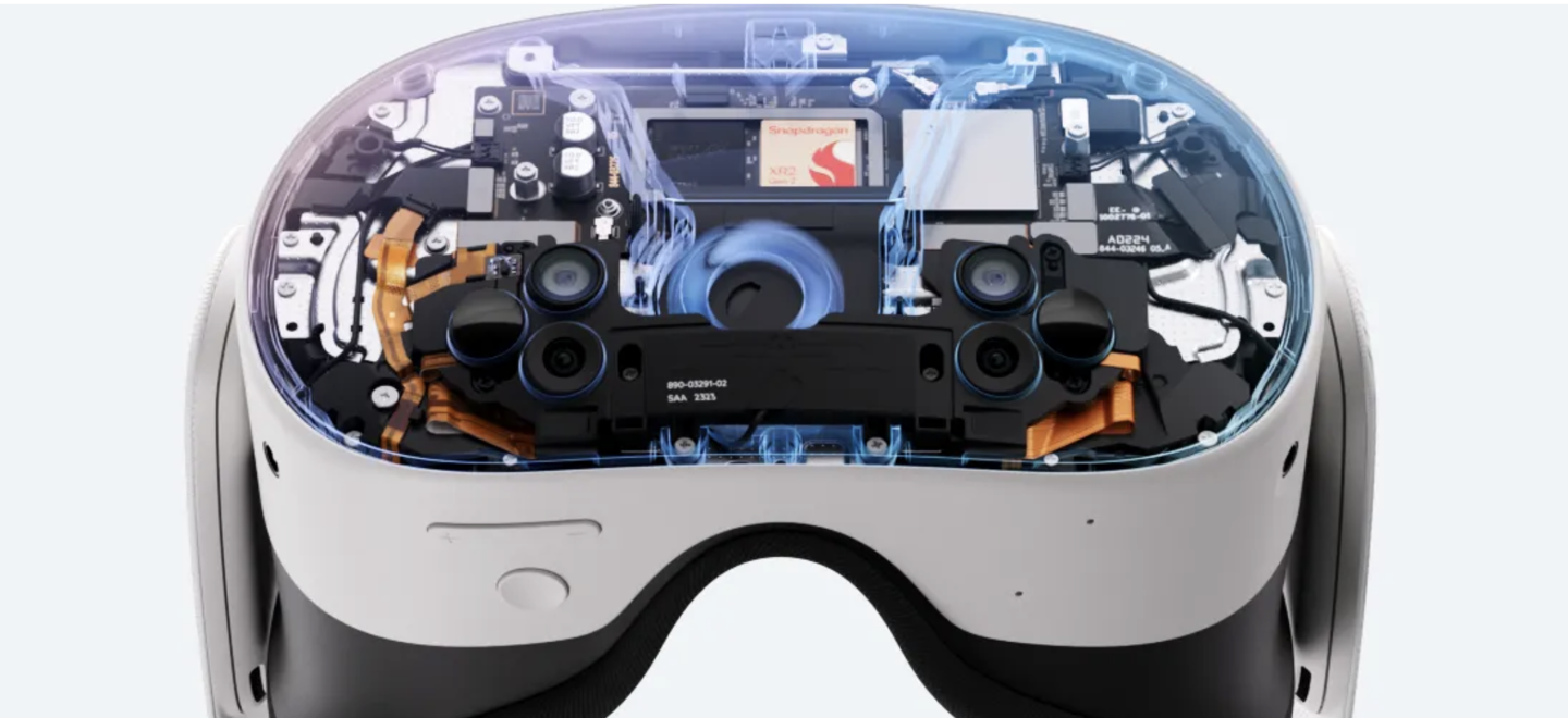 外观方面,这款头显内置 Quest 3 同款彩透摄像头(支持彩透穿透模式)、同款 Touch Plus 处理器,也支持手势追踪。