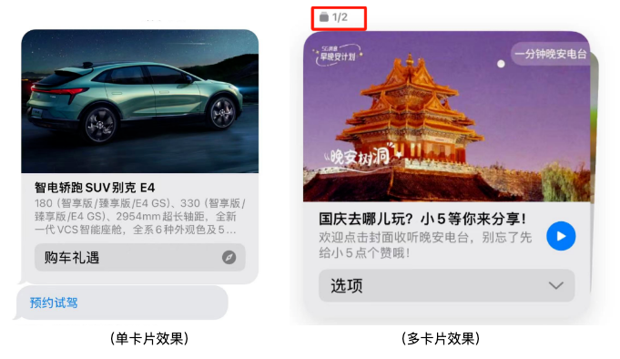 5G 消息的视频可以在同界面直接播放,无需跳转;还有竖版卡片等展示样式。