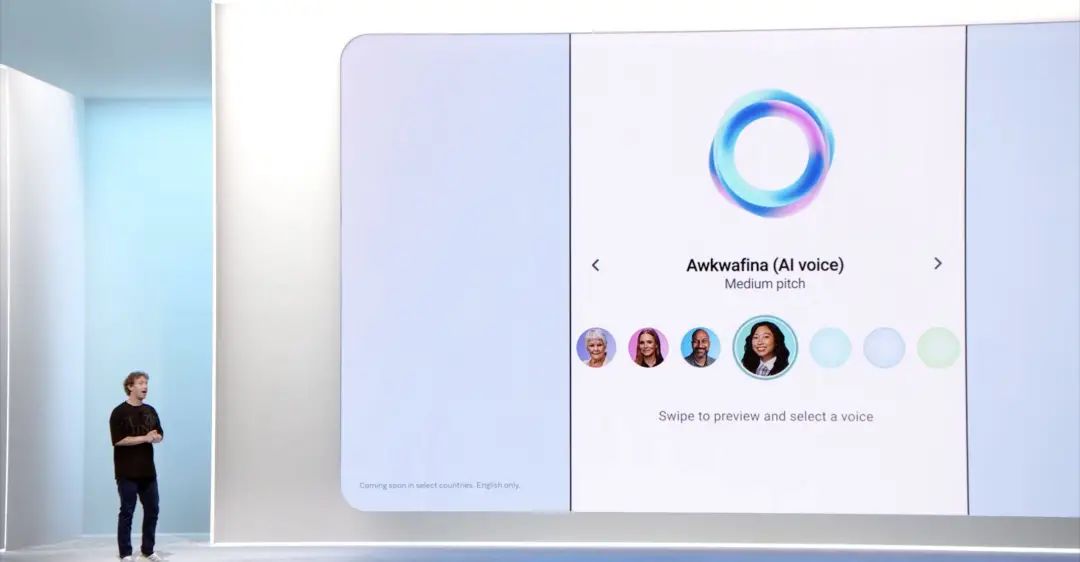 扎克·伯格在发布会上宣布,Meta AI 正式上线语音功能,用户可以通过 Messenger、Facebook、WhatsApp 和 Instagram 向 Meta AI 提出问题或以其他方式聊天,并获得模拟语音回复。