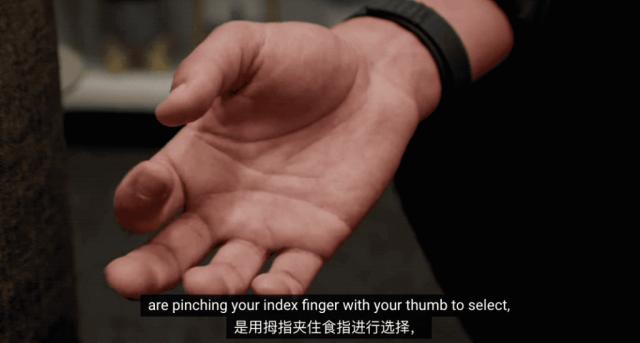 有了这个腕带,用户可以把目光当作 Orion 界面的指针,捏合当作点击,整体体验非常自然,更重要的是,如果要在公众场合用 AR 眼镜,不用再尴尬地对着空气「发号施令」或者「指手画脚」,双手插兜也能完成交互。