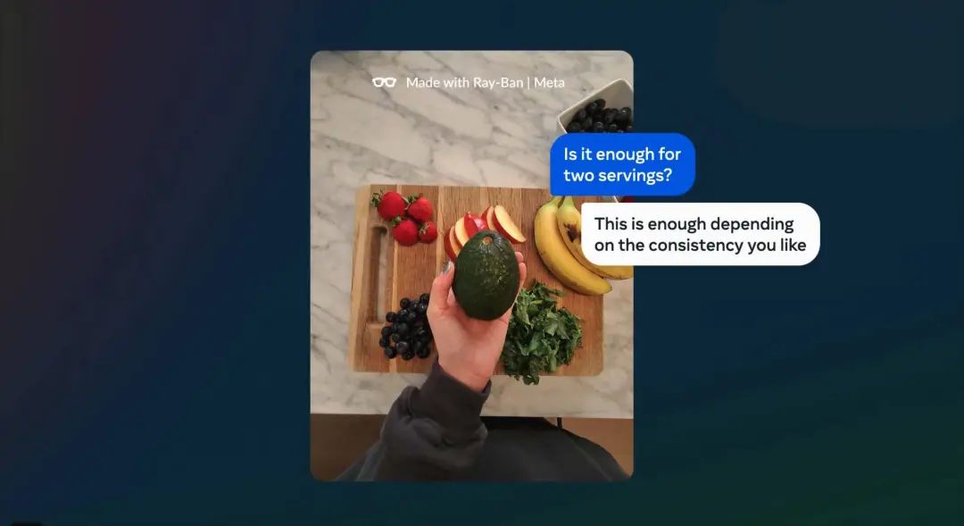 你可以直接咨询 Meta Ray-Ban 可以用牛油果做点啥好喝的饮料,你甚至都不需要在句子里提到牛油果,直接用「这个」等代词就行,因为它看得见。