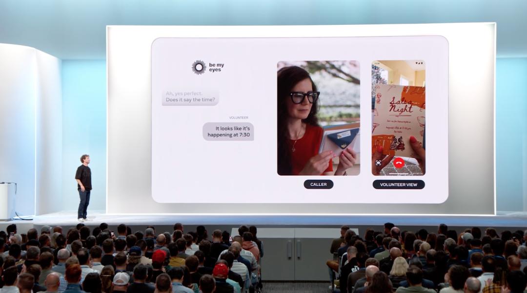 也正是因为这颗摄像头的存在,Be My Eyes 和 Meta 的这次联姻才成为了可能。Be My Eyes 是一家通过实时视频和人工智能,将盲人或视力低下的人,与视力正常的志愿者和公司联系起来的公益平台,通过线上实时的视频通话,志愿者/组织可以帮助智障人士解决眼前的困难。