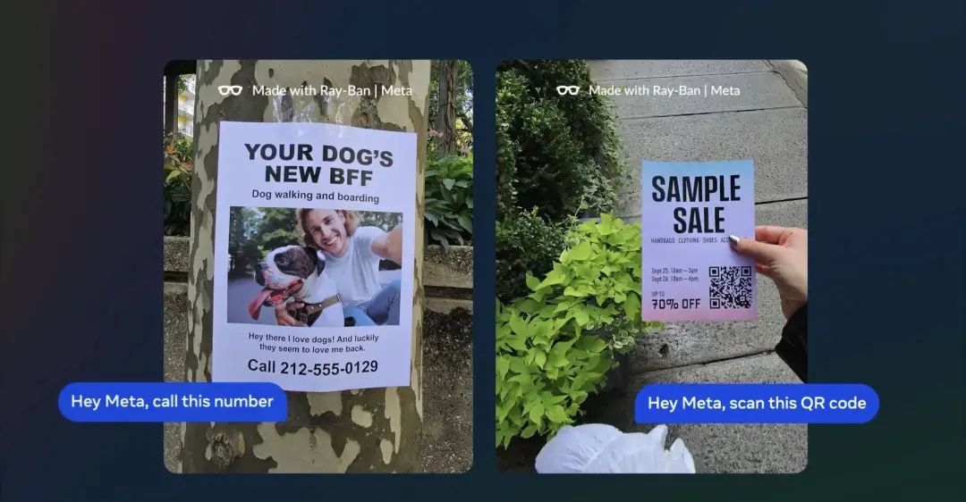 拨打海报上的号码,扫描宣传册上的二维码,帮你搭配日常穿搭......总之通过眼镜上的摄像头,加上全新升级的视觉大模型等 AI 能力, Meta Ray-Ban 几乎能出现在你生活的每个角落。