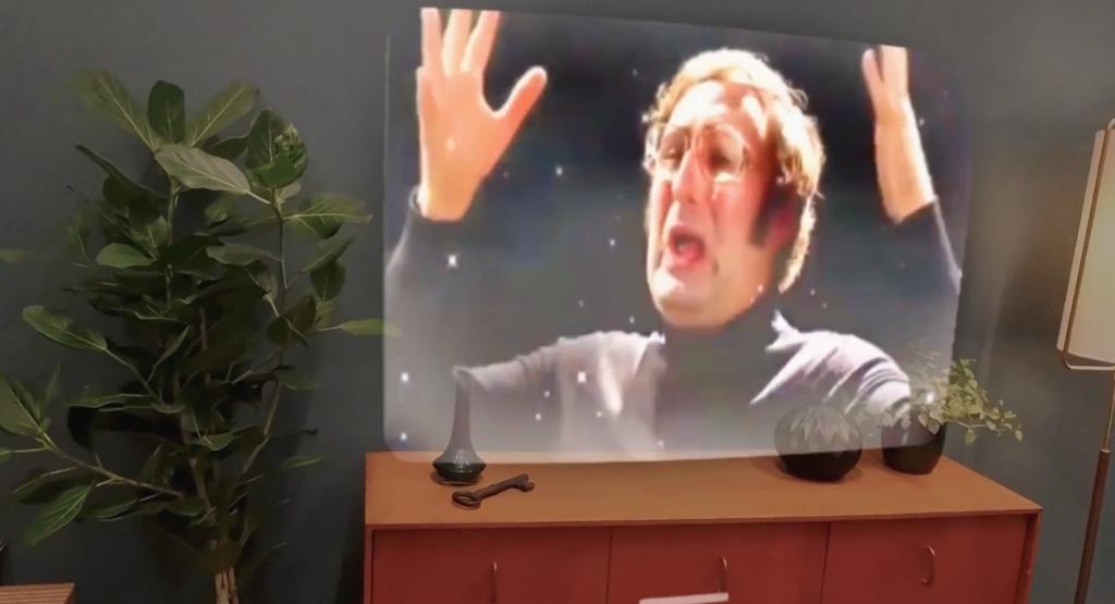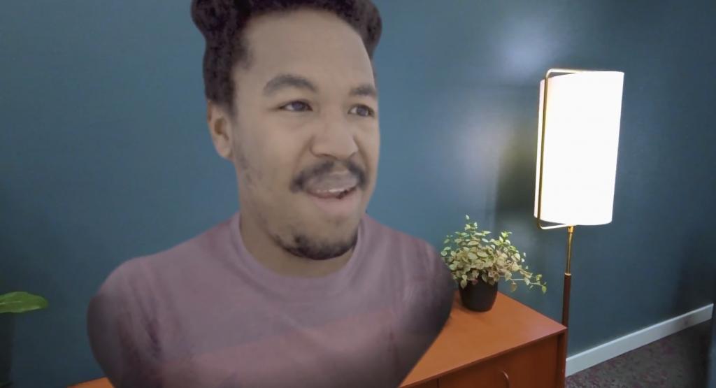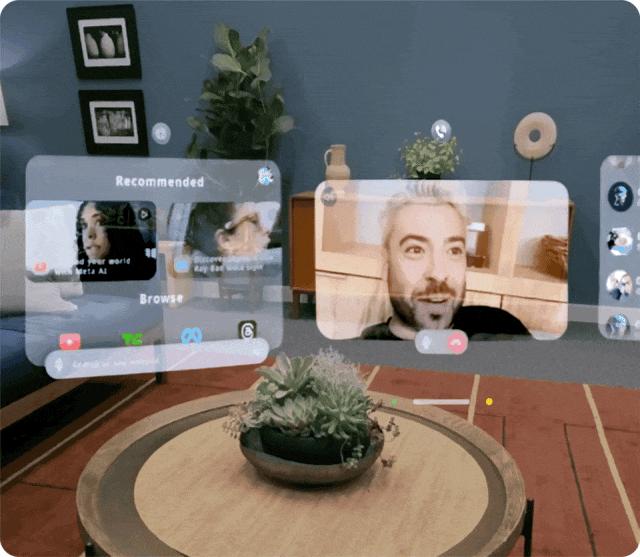 Meta 擅长的社交能力也和 AR 眼镜碰撞出了新的花样,通话中的好友会以一个全息投影的形象出现在你的面前,不过目前还比较粗糙。