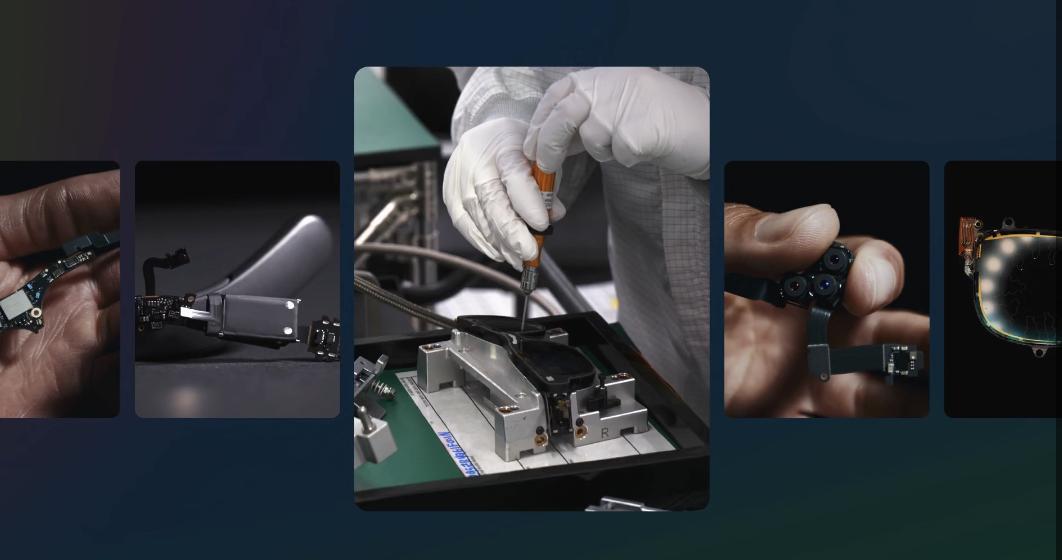 据The Verge的记者介绍,镜框内嵌有七个摄像头,可以将虚拟物体固定在现实空间中,协助眼球和手部跟踪,并让 Meta 的 AI 助手了解您正在看什么。Meta的这一摄像头围绕镜框布置的设计,与苹果Vision Pro的设计异曲同工。