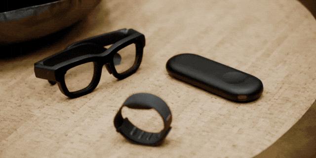 1、AR眼镜采用分体式设计:Orion眼镜本身(98g)、独立计算单元、肌电手环;