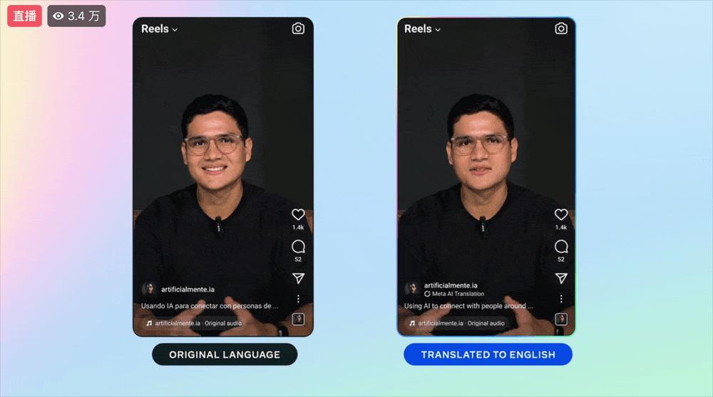 这一功能首先将在Instagram和Facebook上进行小规模测试,将来自拉丁美洲和美国的创作者的视频翻译成英语和西班牙语,未来将会扩展到更多创作者和语言中。