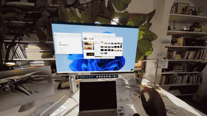 Meta已提供多屏幕支持,并且能够直接与显示器上正在发生的事情进行交互。例如,用户可以直接拖拽笔记本中的界面到Quest设备中。