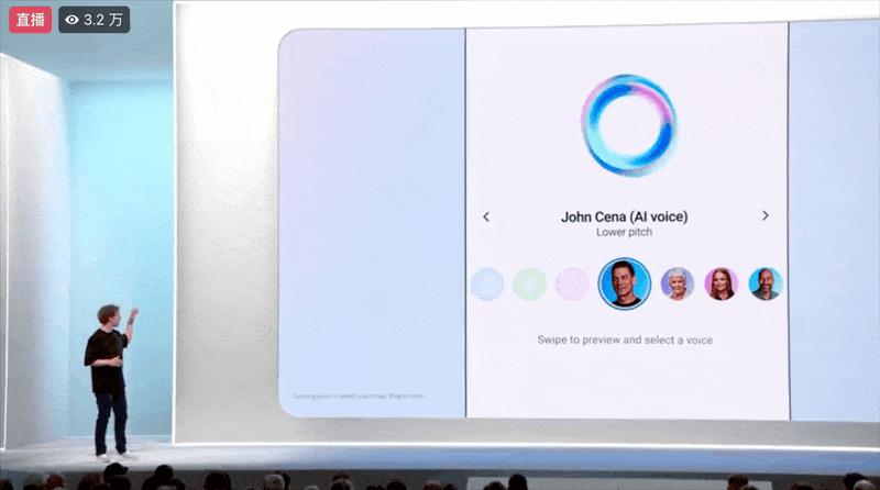 借助Llama 3.2,Meta AI推出全新多模态功能,能支持语音交互了,有多种音色选项(包括一些名人的声音)。扎克伯格现场演示与Meta AI语音聊天,非常丝滑。