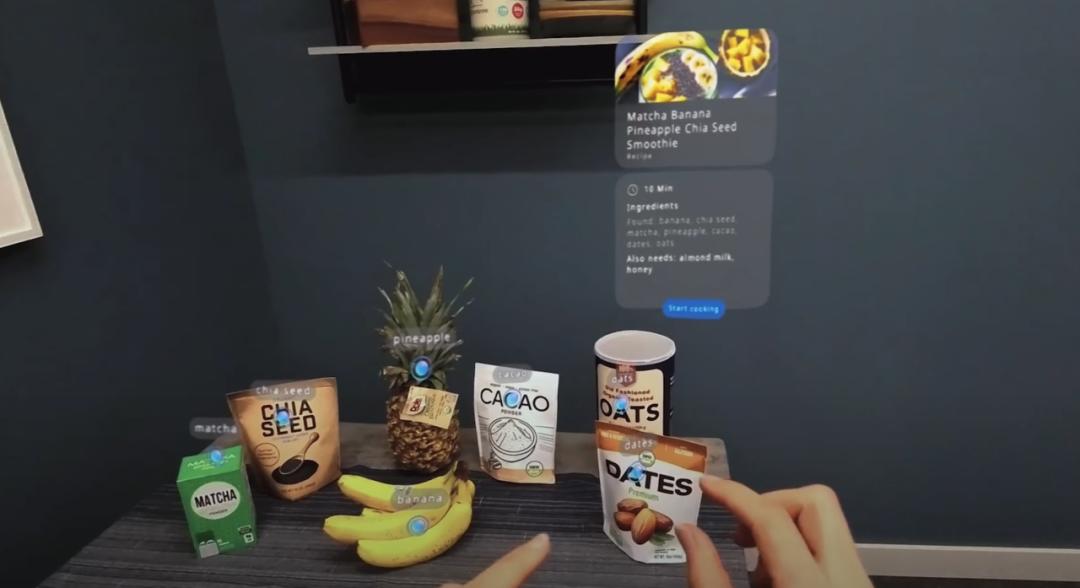 Meta 展示了两条比较清晰的产品线。一是,迭代 Quest 头显,打造逼真的混合现实体验;二是,打造一个新的个人 AI 计算平台,可日常佩戴的轻量化眼镜是目前最好的载体。