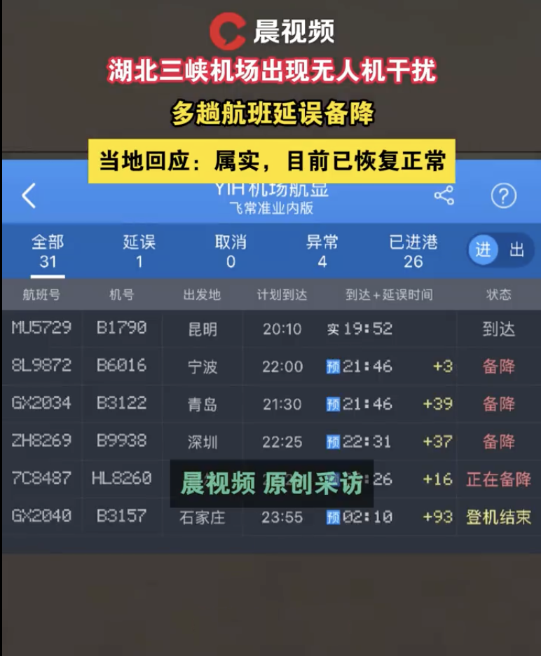 IT之家 9 月 26 日消息,据“潇湘晨报”报道,9 月 24 日,有消息称湖北宜昌三峡国际机场疑出现无人机干扰,致多趟航班延误备降,引发网友关注。