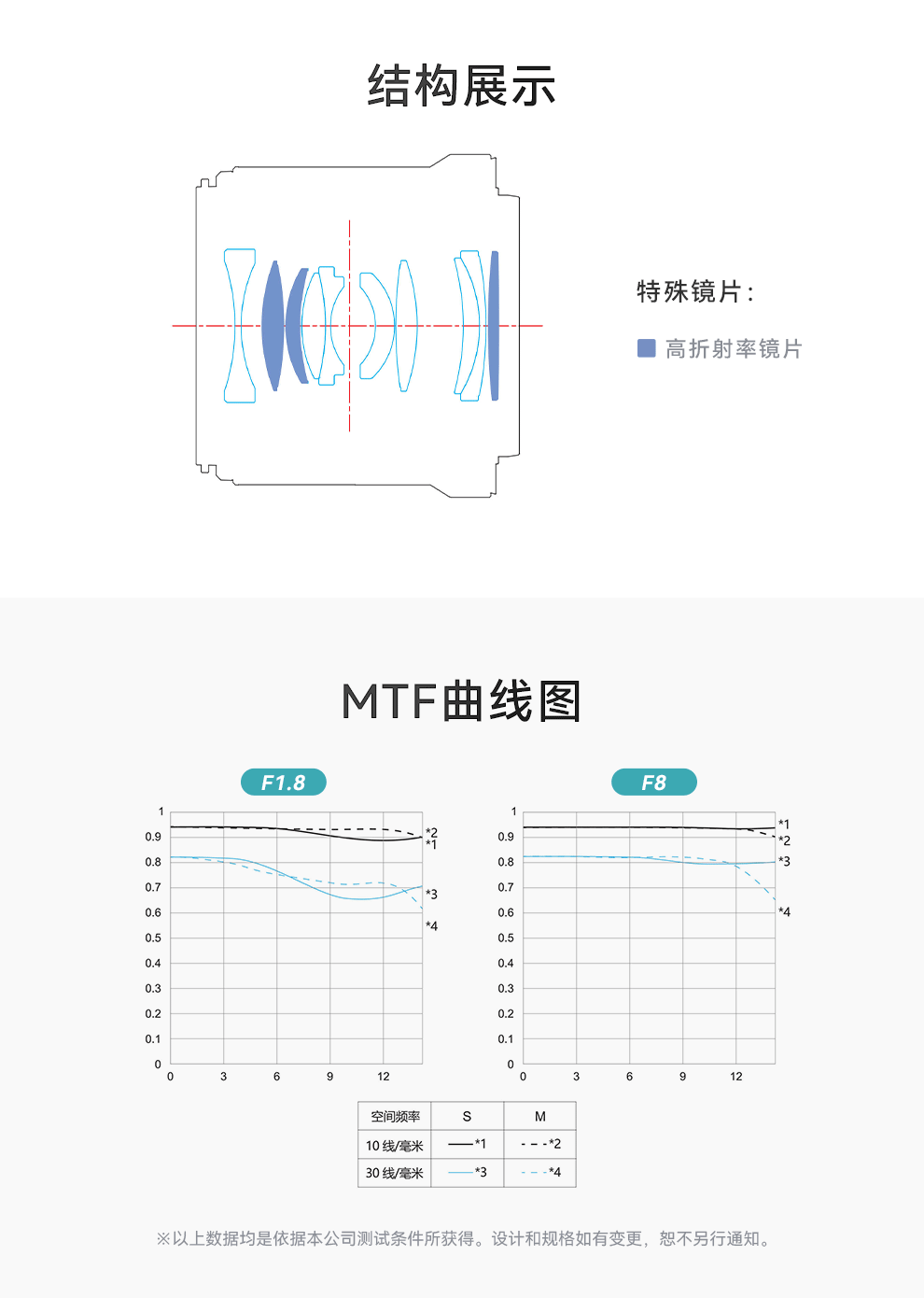 这款镜头采用 8 组 10 片镜片、7 片光圈叶片、防污氟镀膜、F1.8 大光圈,支持自动对焦,内置 2.4GHz 无线模块,配备无线遥控器 BR-L 可实现遥控对焦,支持 A-B 对焦及对焦速度、视频录制启停等功能。