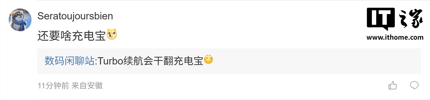 ”,博主则回复道:“Turbo 续航会干翻充电宝