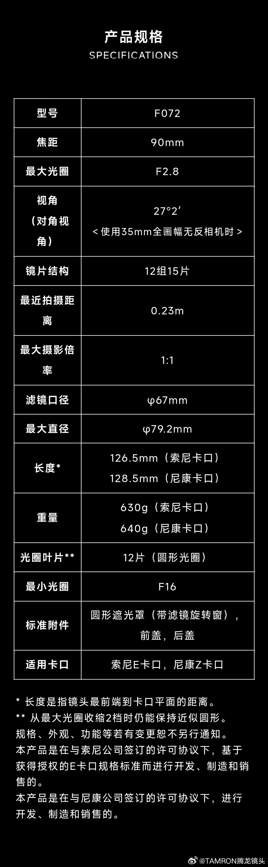 参数方面,这款镜头具备 90mm 焦距、F2.8 最大光圈、12 组 15 片镜片、12 片光圈叶片,最近拍摄距离 0.23m,最大摄影倍率 1:1,滤镜口径 67mm,最大直径 79.2mm,重约 630~640g,还包括: