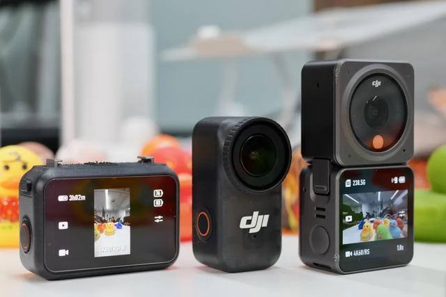 分体状态的 OSMO Nano(2025)和 DJI Action 2(2021)。