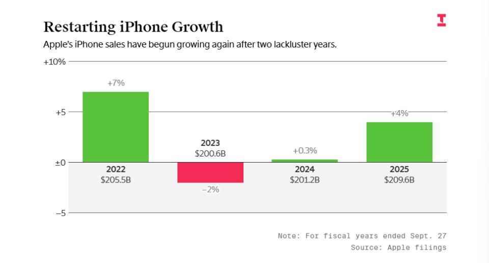 图:经历两年疲软期后,iPhone销量终于再次呈现出积极态势