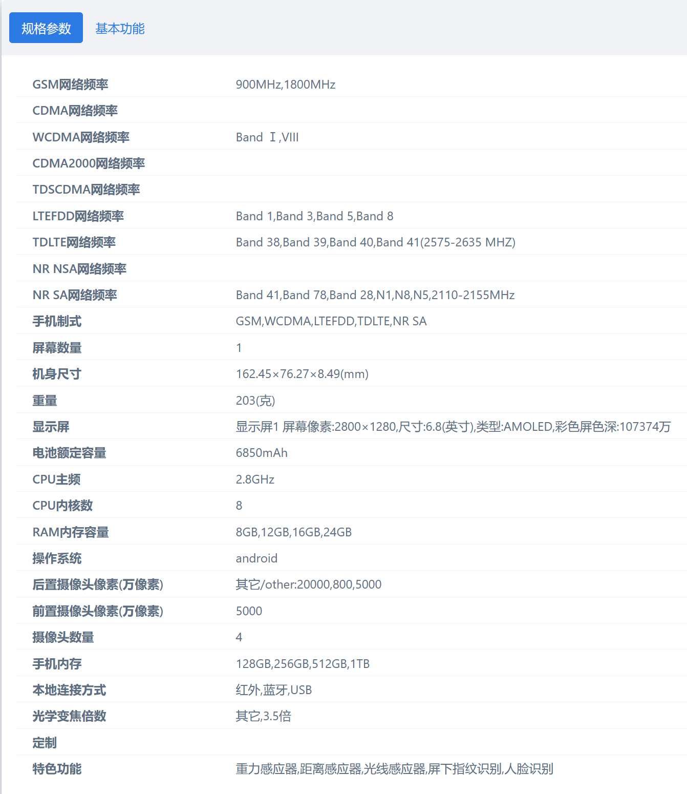 屏幕方面,该机配备了一块 6.8 英寸的 AMOLED 显示屏,分辨率达到 2800 x 1280 像素(1.5K 级别),支持显示 10.7 亿色。