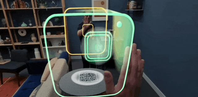 Alex Heath 和扎克伯格一起玩了 3D 乒乓球游戏,他们先用扫描二维码的形式配对眼镜,然后使用手部追踪打球,游戏中几乎没有延迟。