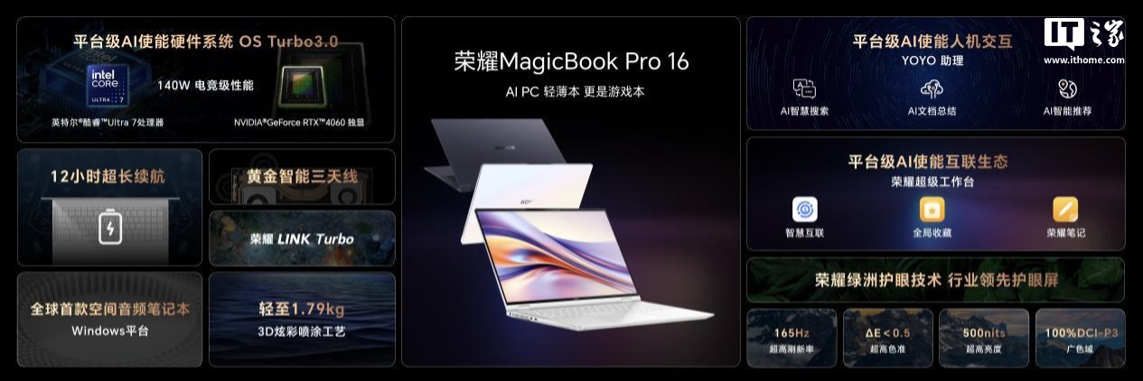 《荣耀 MagicBook Pro 16 正式发布:荣耀猎人回归,至高 Ultra 7-155H + RTX 4060》