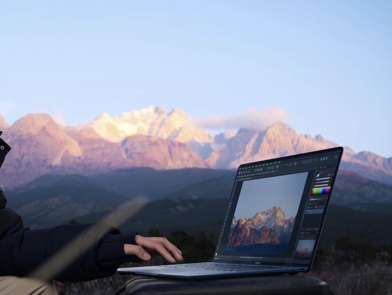 而说到内容创作,笔记本的屏幕也很重要。华为 MateBook X Pro 是全球首款搭载 14.2 英寸柔性 OLED 屏幕的笔记本电脑,搭载一块 14.2 英寸柔性 OLED 原色屏,这块屏幕拥有 93% 的屏占比,3.1K 高分辨率,120Hz 刷新率,Adobe RGB、sRGB、P3 三色域下平均 △ E<1。出色的屏幕素质让大家能够准确地创作出自己想要的作品效果,更加精准地还原出自己看到的河山美景。