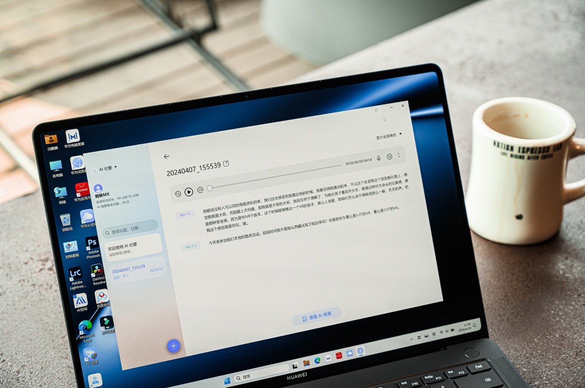 作为一款智慧 PC,华为 MateBook X Pro 所带来的智慧体验更是其他传统笔记本所不能比的。在盘古大模型的加持下,全场景 AI 深度赋能智慧 PC。首次支持了 AI 概要的能力,它可以帮助我们快速地从大量的音频信息中提取出关键信息,让内容更加精简。