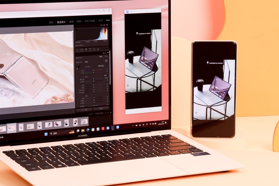此外,它还支持超级终端,支持 PC 与手机、平板、耳机、智慧屏等设备的无缝协同,旅途中用手机拍摄的户外摄影大片,一拉即合,就可同步到 PC 上,美图大片快速直出,就像使用同一台设备一样简单,告别繁琐的连接配置。