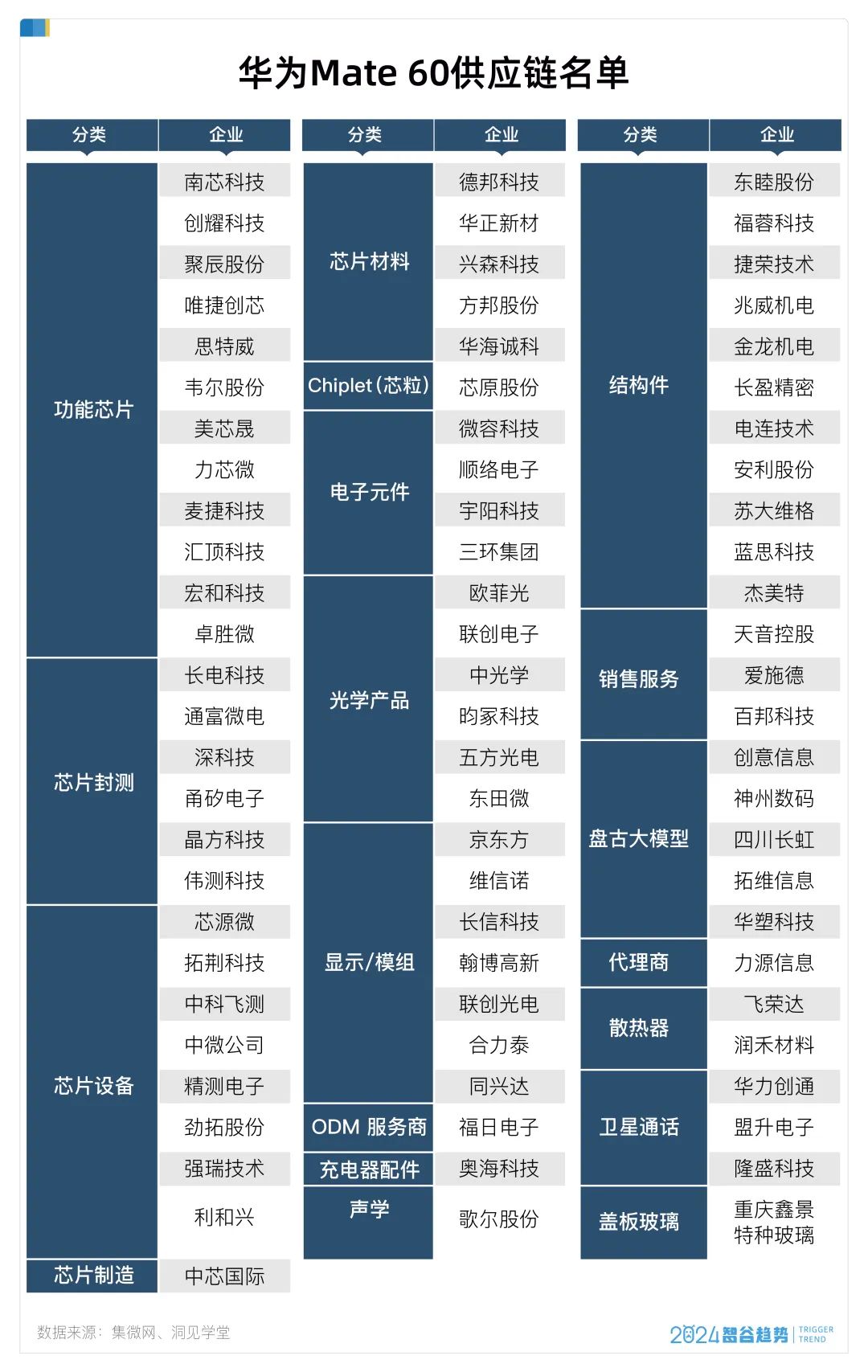 据集微网统计,华为在A股的供应商企业数量就超过了500家,其中与智能手机相关的预计超过100家。