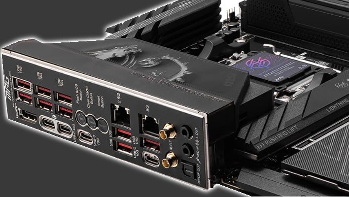 主板的 I/O 群组中,双 USB 40G 端口均支持 DisplayPort 输出,另外还有 13 个 USB-10G 端口,其中 5 个是 USB Type-C,另外 8 个是 USB Type-A。