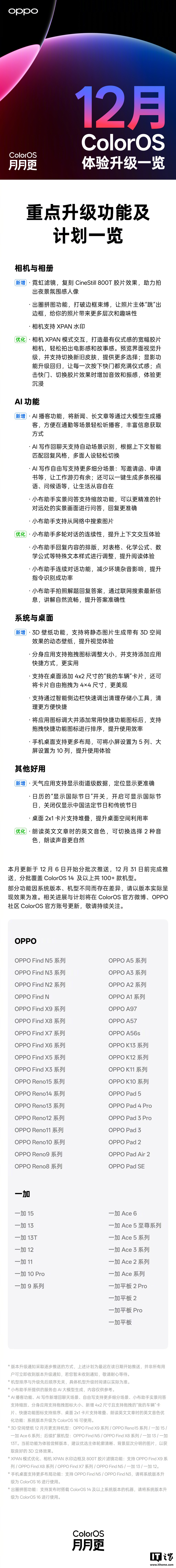 IT之家 12 月 23 日消息,OPPO ColorOS 官方昨日发布了 2025 年度记忆。据介绍,ColorOS 今年已连续更新 12 个月,参与升级用户 2.9 亿、更新功能 2000+、覆盖机型 300+。