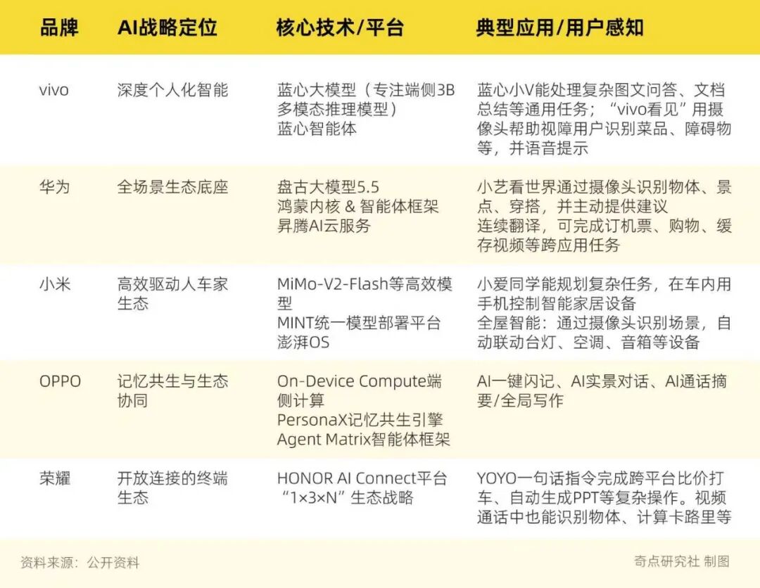 在「云端大模型→ 端侧推理 → 系统级智能体」这条时间轴上,每家手机厂商都在押注那一刻:一旦杀手级应用(App or Agent)出现,谁能最快把它搬进自家设备里,谁就握住了分发权。