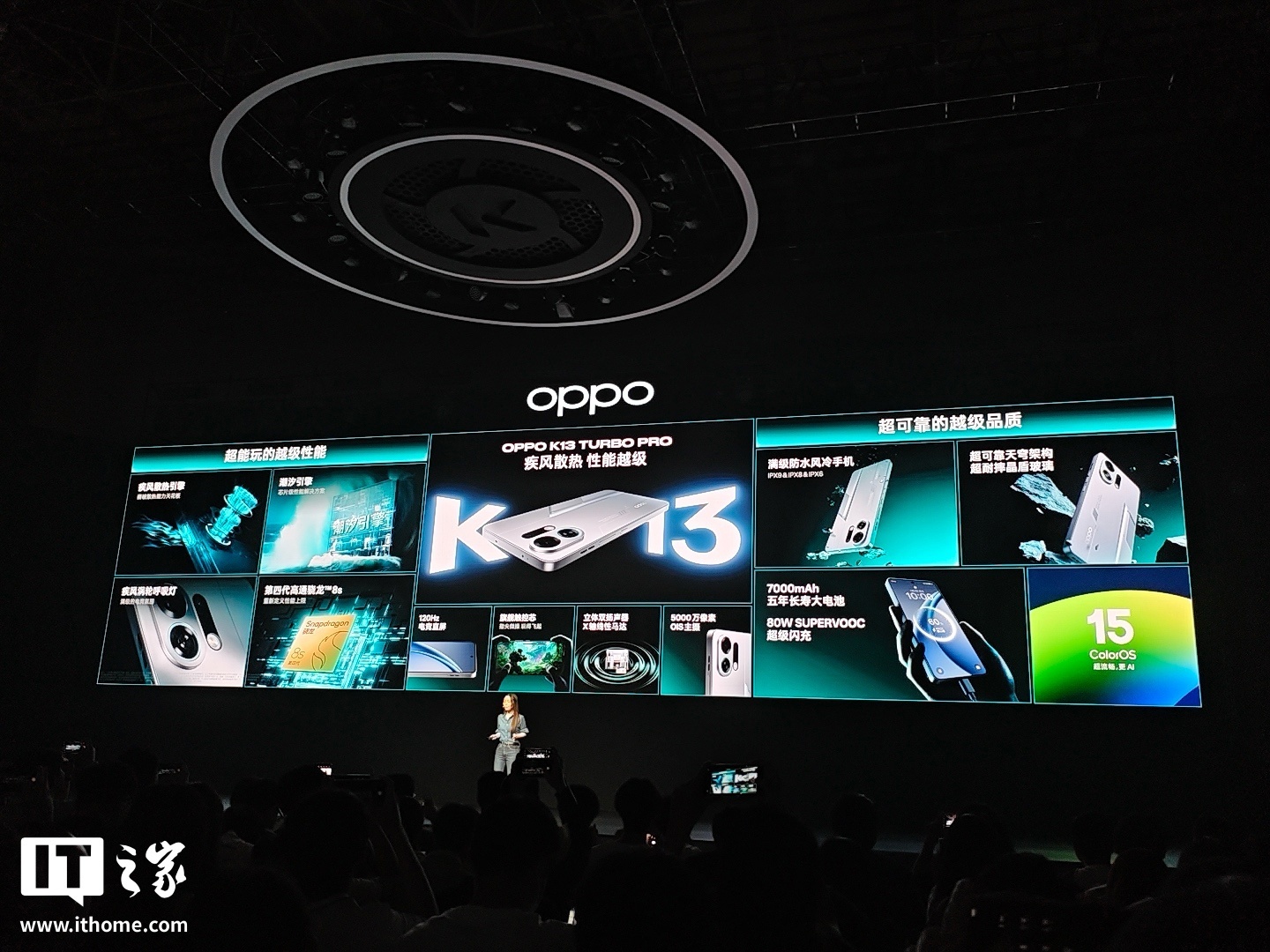 据IT之家此前报道,OPPO K13 Turbo 系列手机已于 7 月 21 日正式发布:IPX9 满级防水认证、至高搭骁龙 8s Gen4 处理器,标准版 1799 元起、Pro 版 1999 元起。作为 OPPO 首款搭载主动散热风扇的中端机型,K13 Turbo Pro 核心配置信息如下: