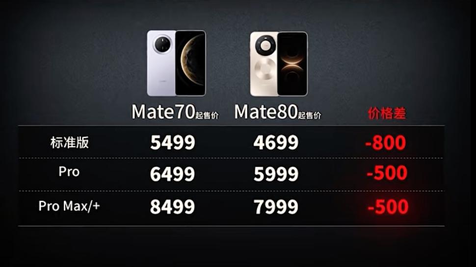 标准版降800,Pro版降500,比5年前Mate 40的起售价还低。