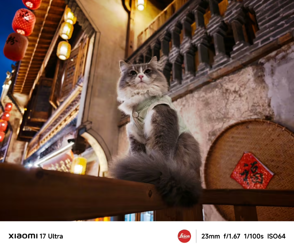 在下面这张猫咪的样张中,光线环境复杂,但猫咪毛发的纹理丝丝入扣,背景的灯笼虚化自然且色彩浓郁,展现了徕卡色彩科学与骁龙 ISP 图像处理的精准调校。