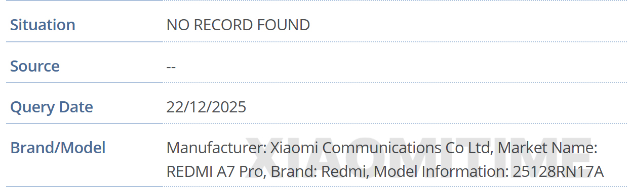 IT之家 12 月 25 日消息,科技媒体 XiaomiTime 于 12 月 22 日发布博文,报道称小米 REDMI A7 Pro 与 POCO C81 已通过 FCC 与 GSMA 认证,代号“arctic”。