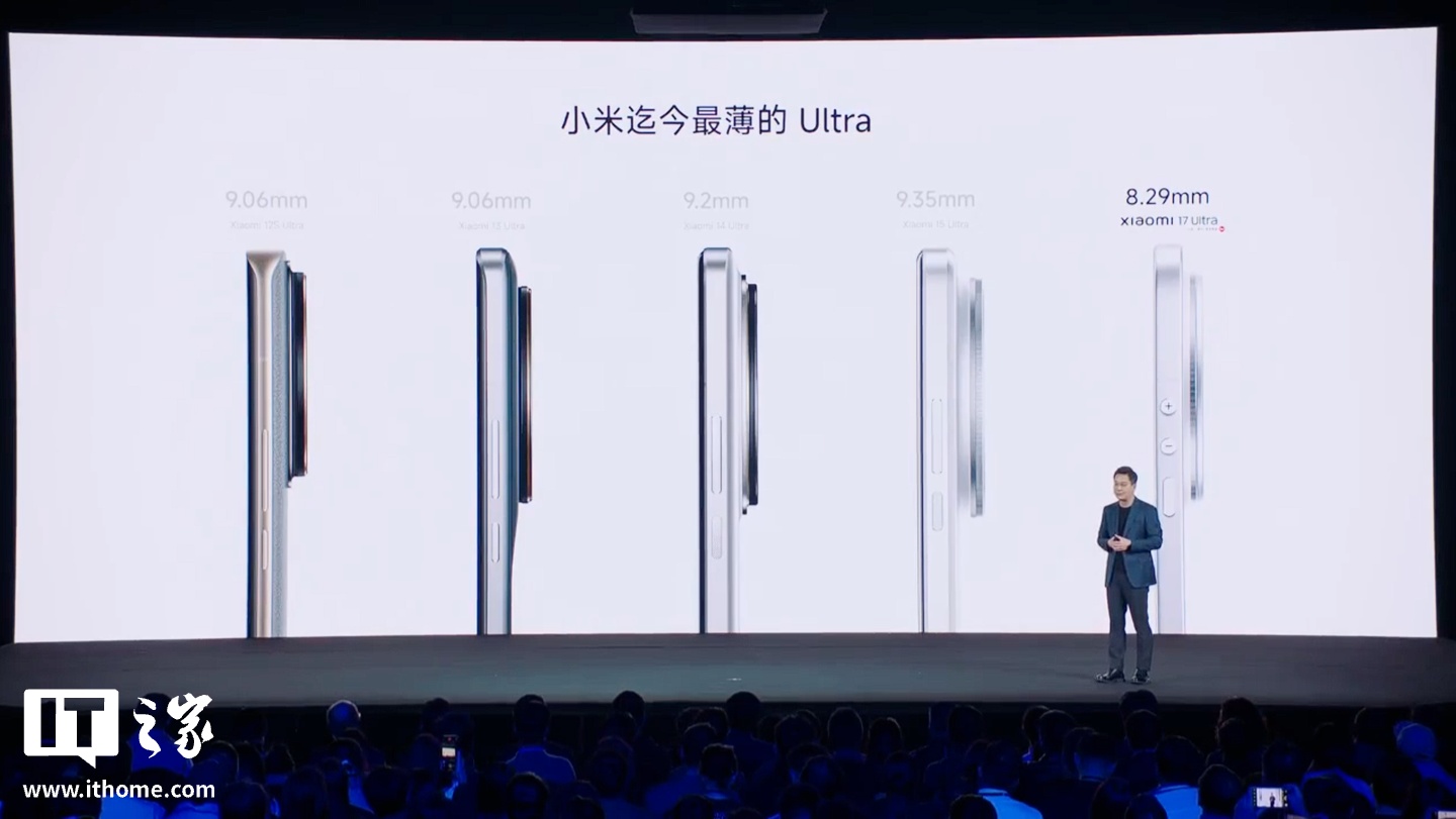 IT之家 12 月 25 日消息,在今晚的小米 17 Ultra 发布会上,卢伟冰透露,小米 17 Ultra 是小米 Ultra 系列首款 2D 直屏机型,也是迄今最薄的 Ultra,厚度仅 8.29mm。